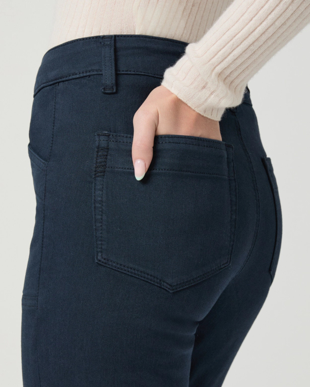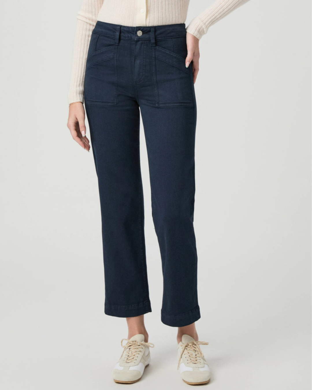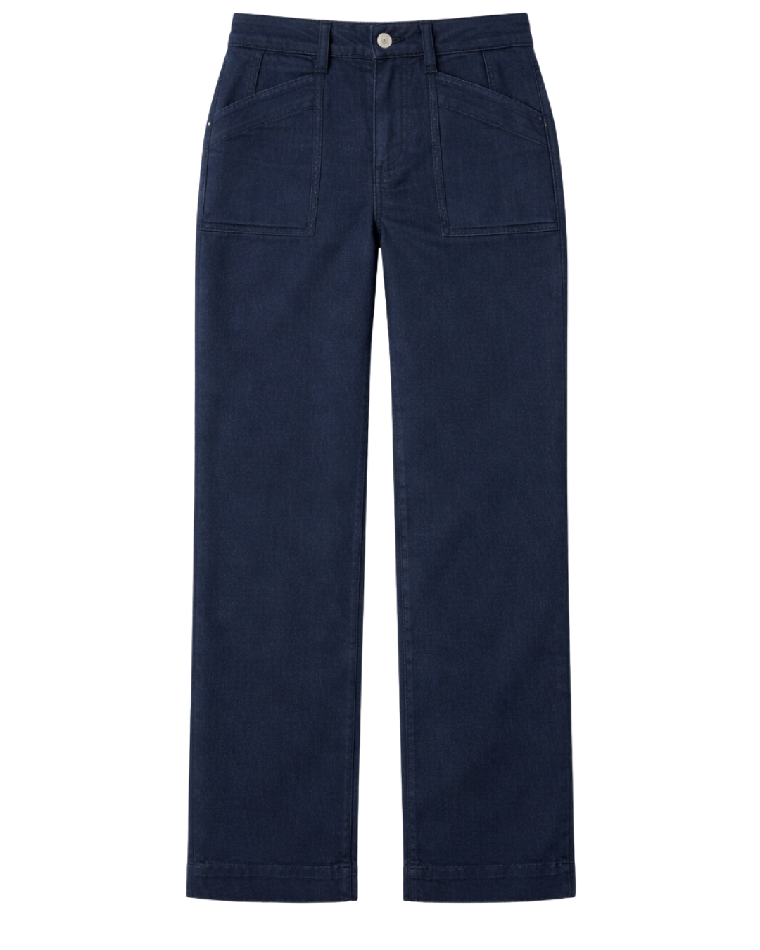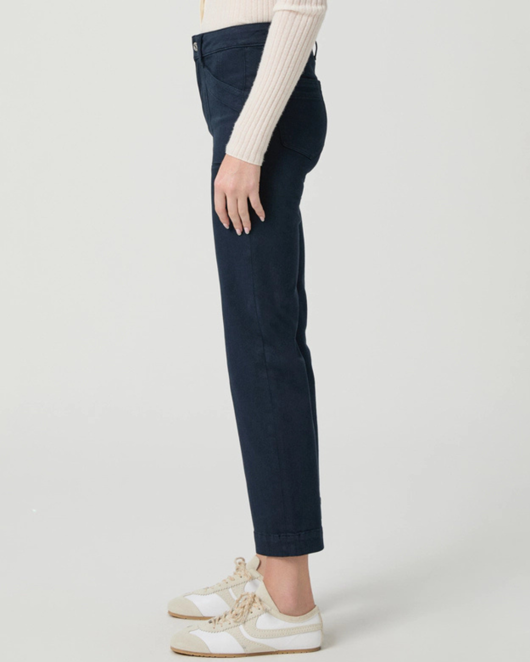 The Quincy Ankle is a mid-rise straight leg with an ankle length inseam and angled patch pockets. This effortlessly cool pair is crafted from a super soft fabric with the perfect amount of stretch in a vintage-inspired navy blue hue.