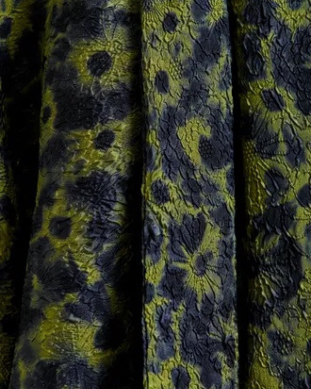 Oversized button-down shirt is designed with versatile collar ties that can be styled into a playful pussy-bow or left to drape elegantly down the front and back. Featuring a jacquard flower print, this statement piece includes dropped shoulders, voluminous sleeves, and a rounded hemline for a relaxed yet refined silhouette.