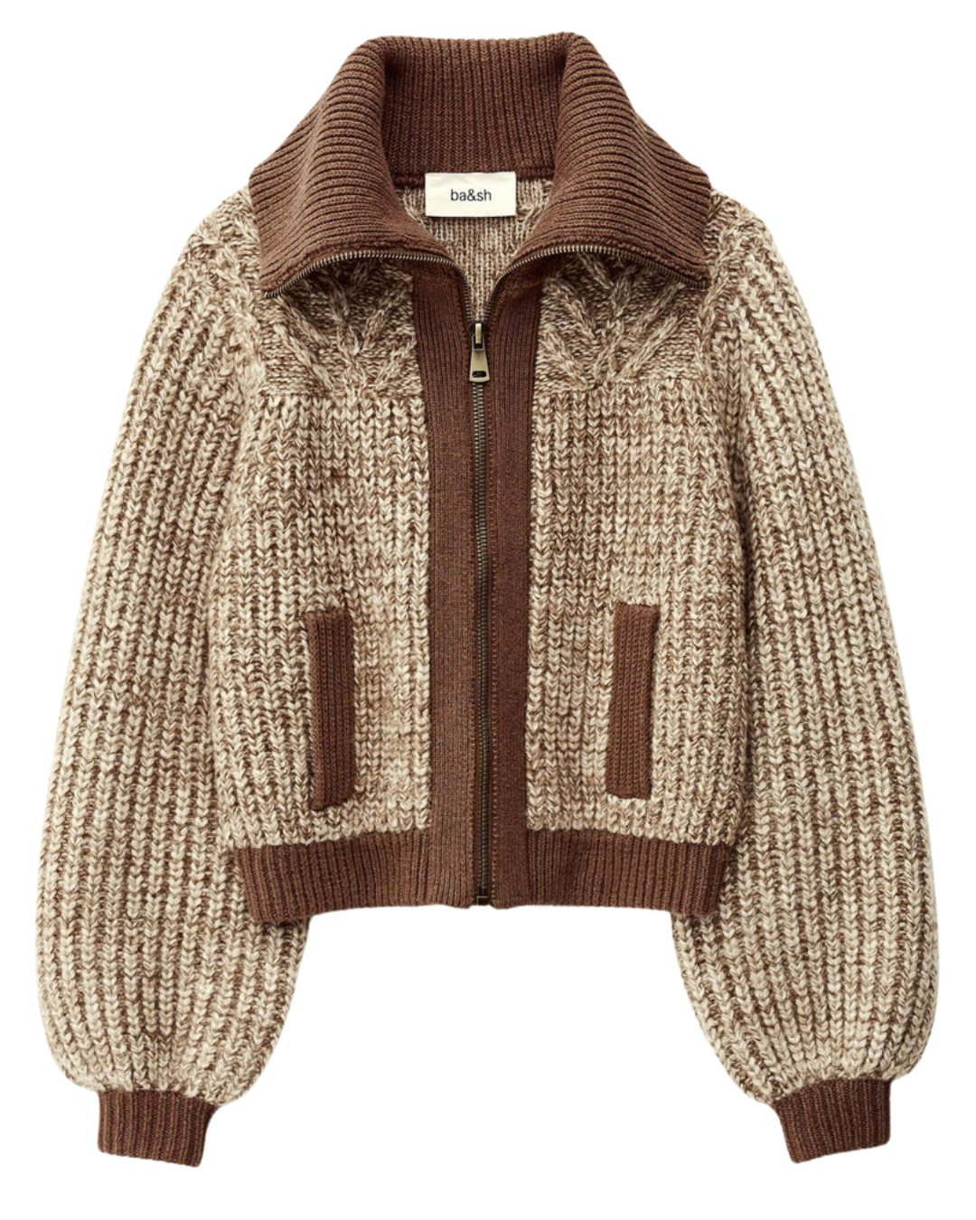 Beautiful chunky knit, zip front cardigan by BA&SH.