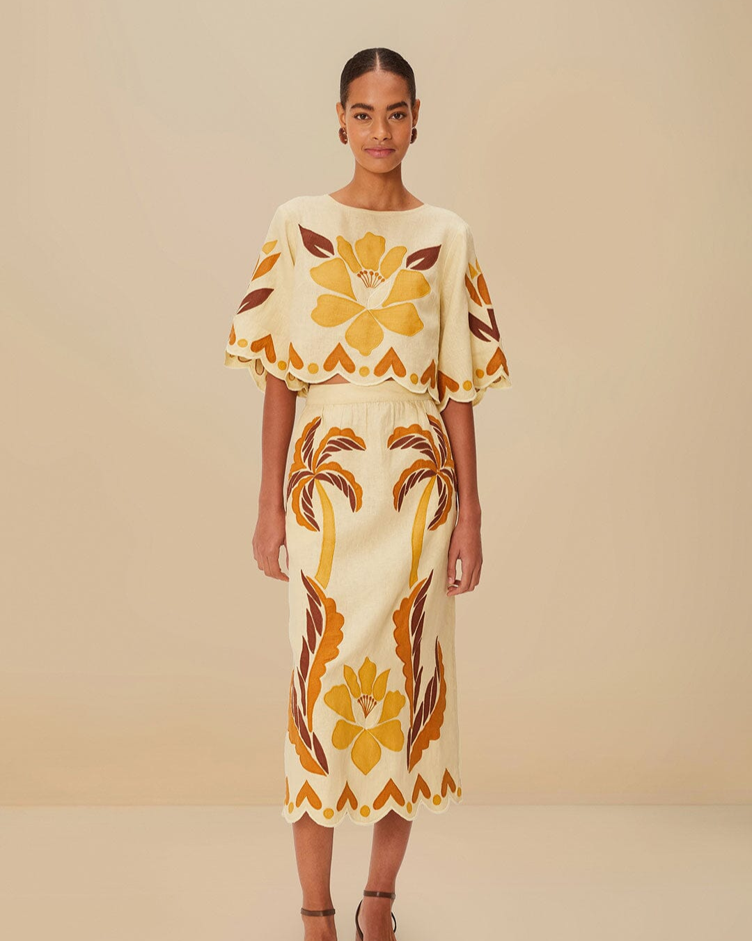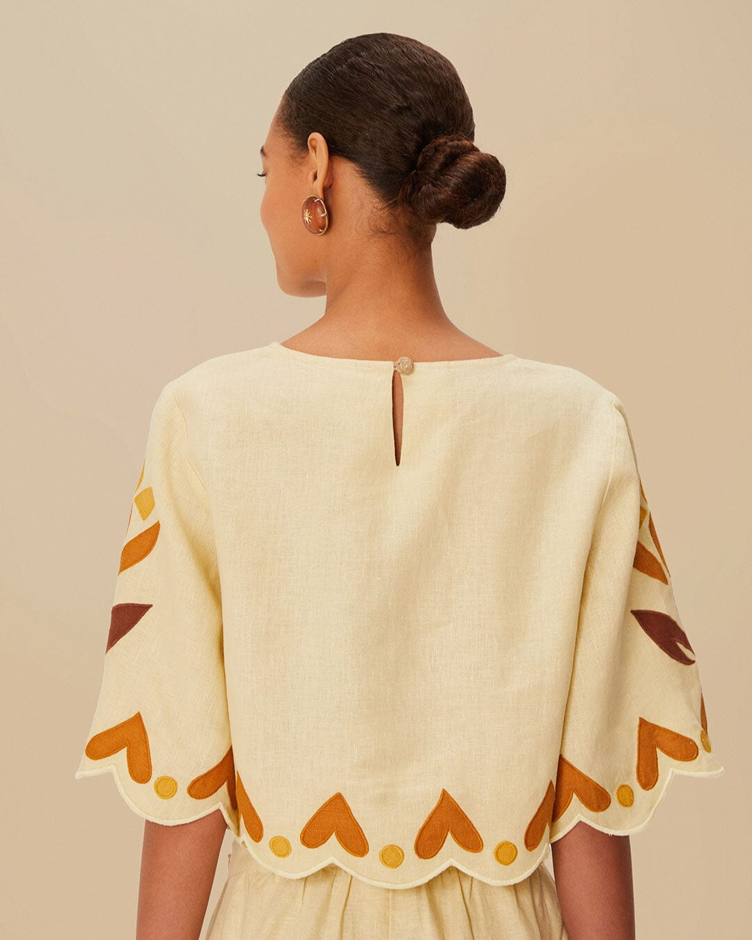 Sand Summer Cutwork Euroflax™ Premium Linen Blouse by FARM Rio