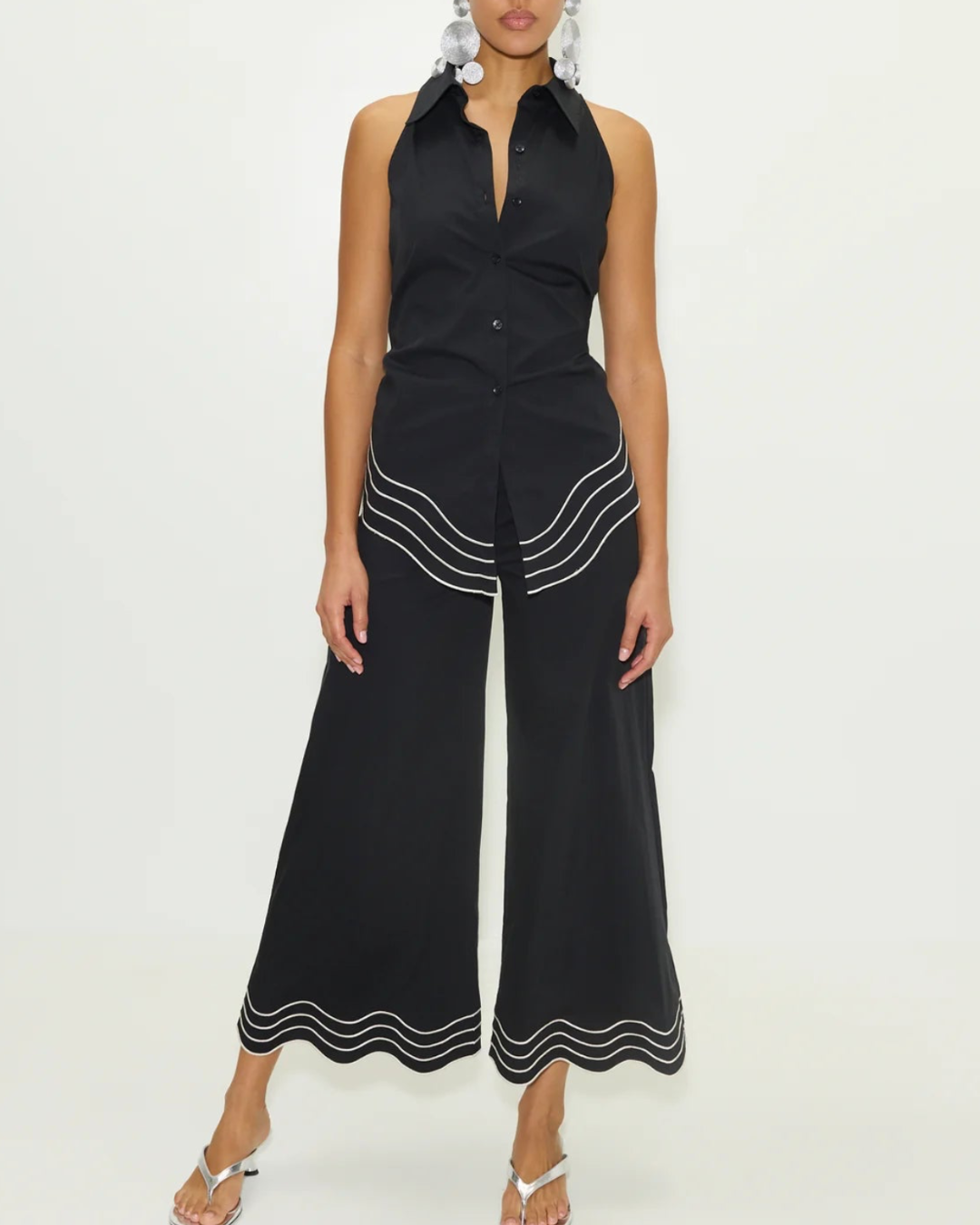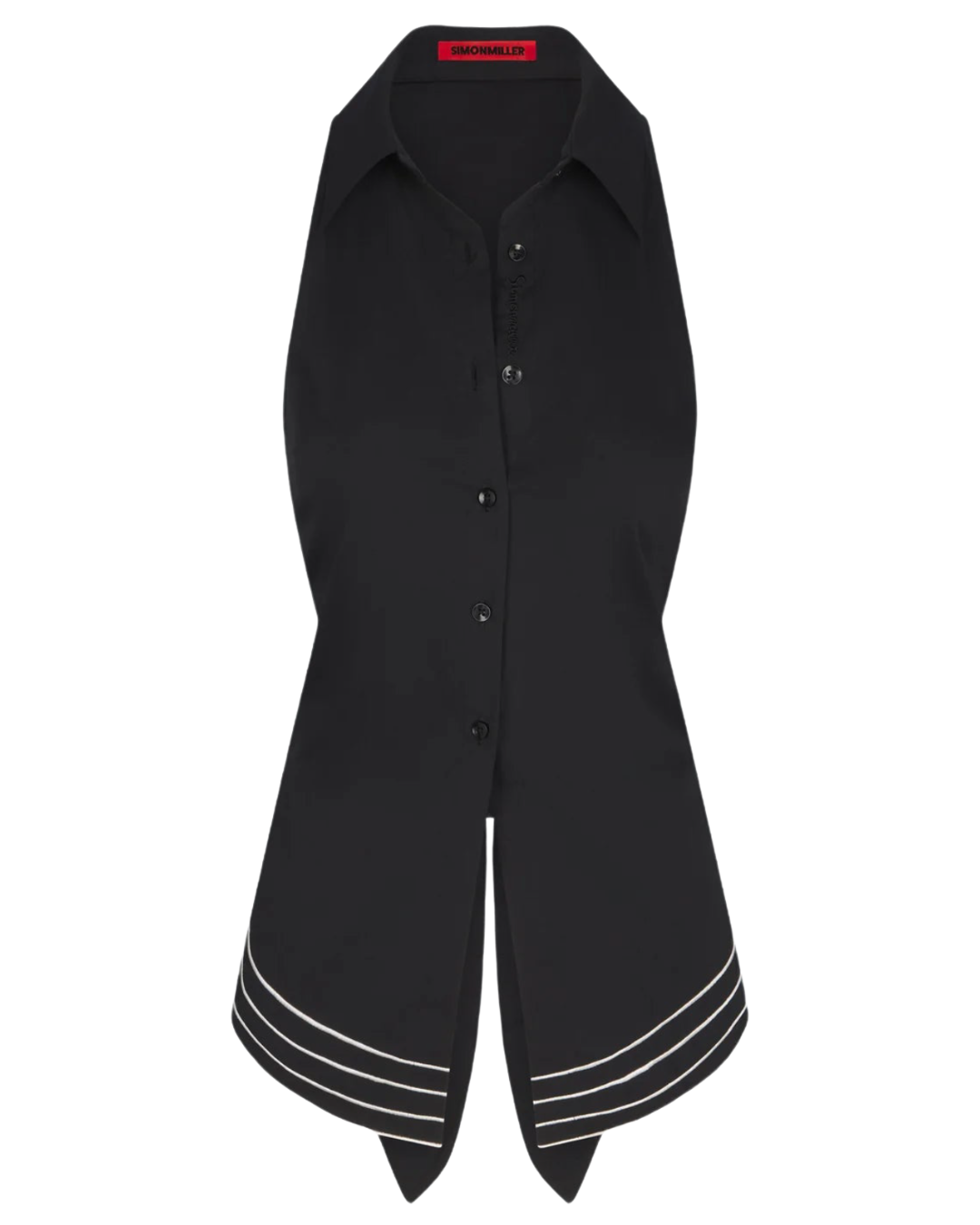 Wavy Sleeveless Loch Button Up Shirt in Black by Simon Miller